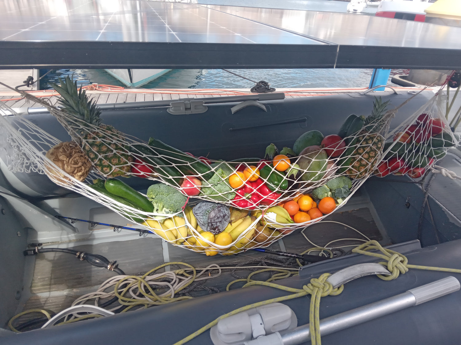 Nous réalisons les courses à base de produits locaux (faible emballage) et de produits frais afin de réaliser des menus simples, gourmands, classiques mais aussi végétariens, confectionnés à tour de rôle par l'ensemble de l'équipage. Les talents culinaires et toutes inspirations sont évidemment mis à contribution! Bateau sec en alcool sur navigation/transat.